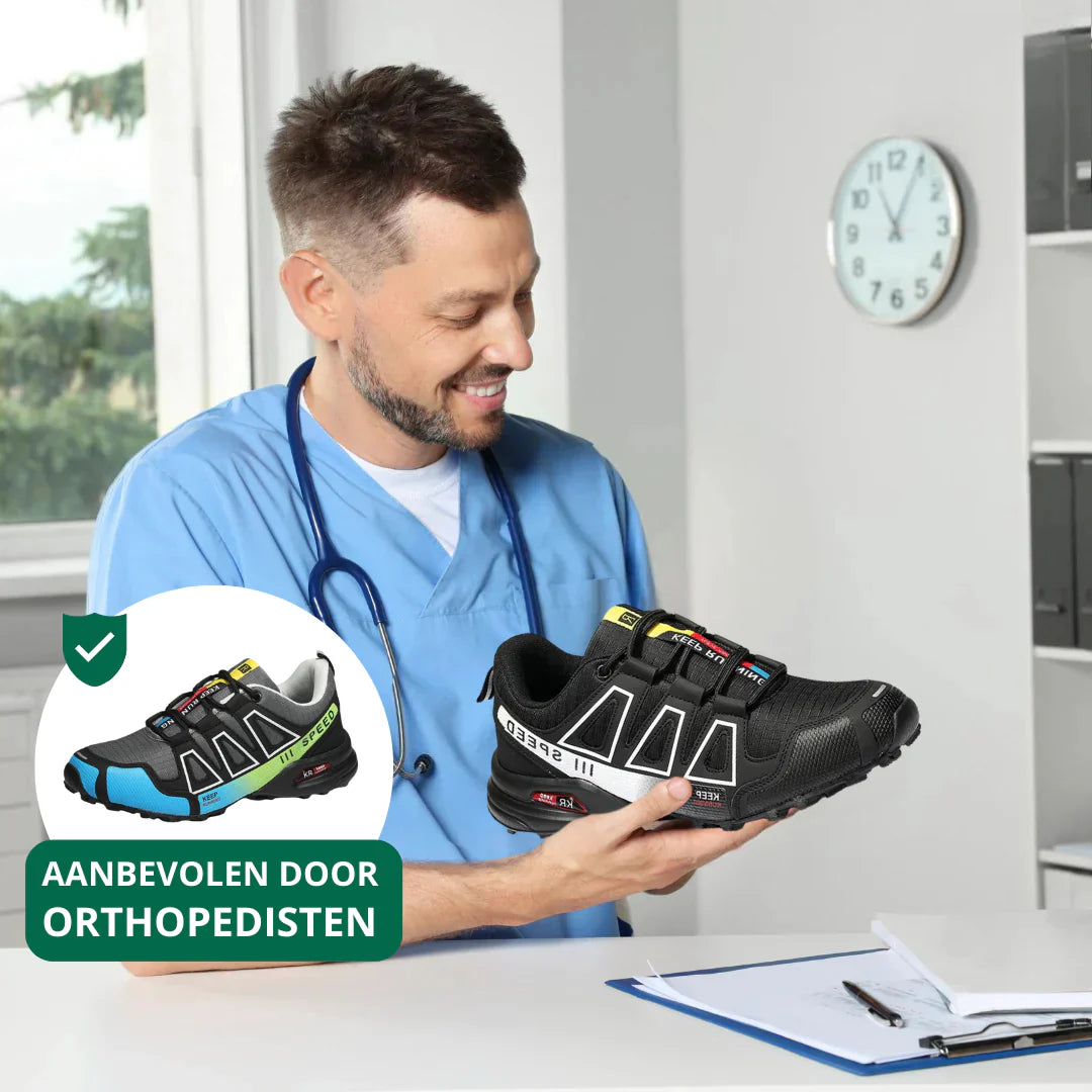 In tegenstelling tot gewone sneakers of wandelschoenen zijn de FlexOrtho™ Unisex schoenen speciaal ontworpen voor maximaal comfort en ondersteuning bij dagelijks gebruik, wandelen en sport. De orthopedische zool met schokabsorptie vermindert drukpunten en voorkomt pijn in voeten, knieën en rug.