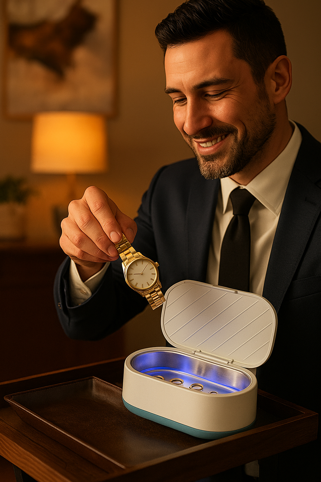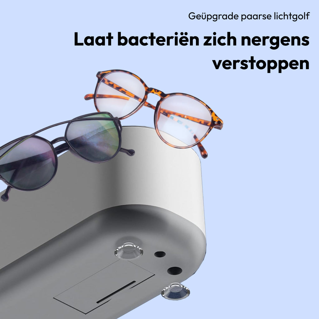 Met slechts één druk op de knop verwijdert het apparaat vuil en bacteriën van bijvoorbeeld brillen, sieraden en accessoires, zonder gebruik van agressieve chemicaliën. Ideaal voor een snelle, veilige en stille reiniging thuis of onderweg.